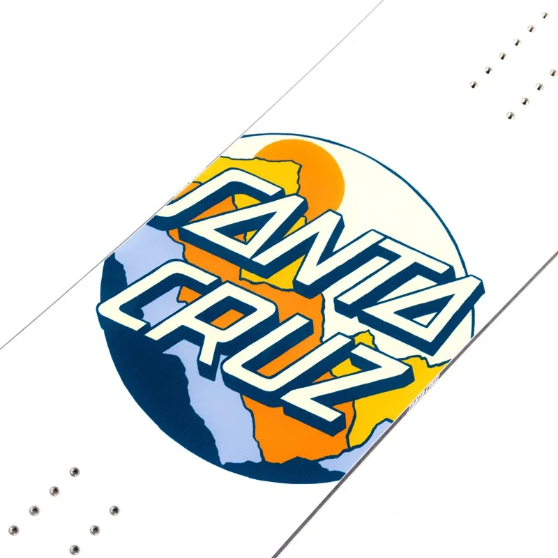 La Santa Cruz Scenic Dot es una tabla de snowboard true twin pensada para riders que buscan versatilidad en freeride y all-mountain. Su perfil combo-camber y construcción en fibra de vidrio biaxial sobre un núcleo de álamo y álamo temblón ofrecen una combinación ideal de respuesta y flexibilidad, permitiendo maniobras precisas y buena flotación en nieve polvo.