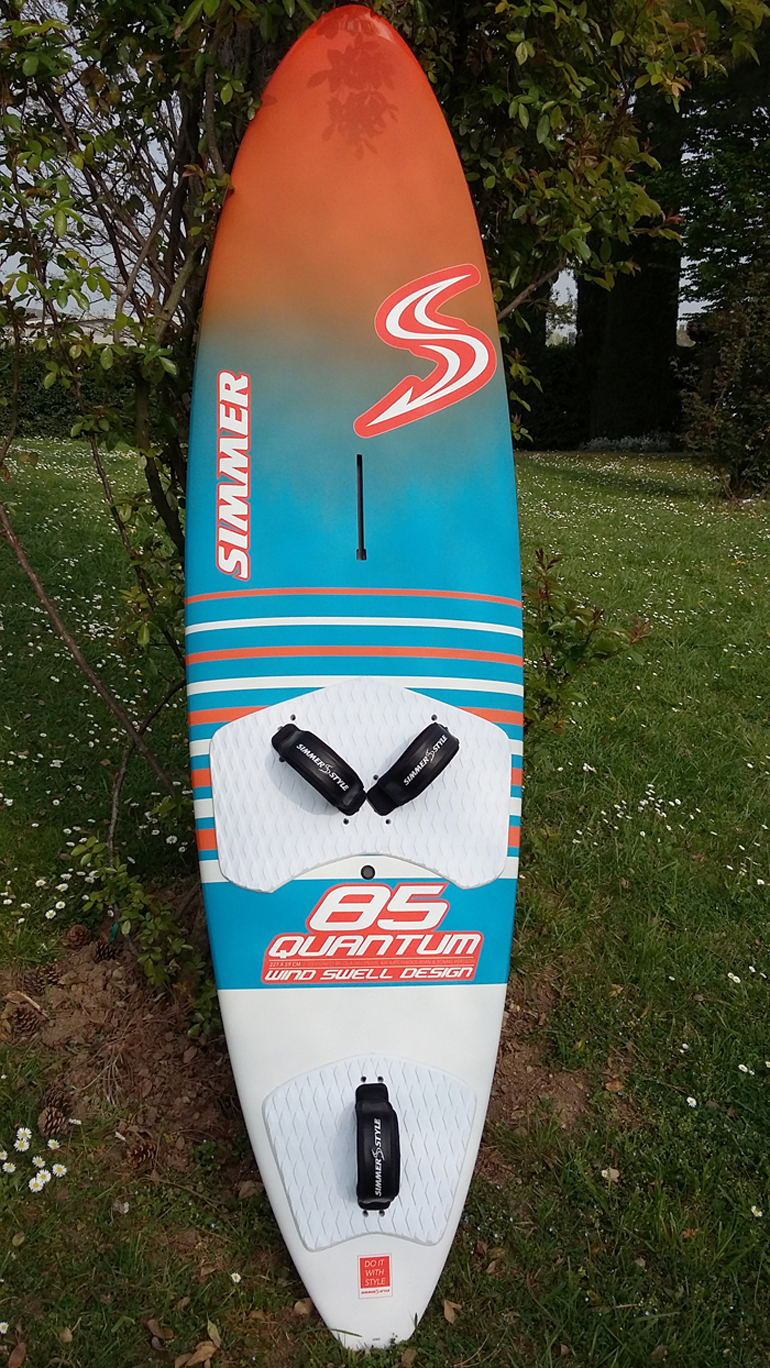 La Simmer Quantum es una tabla de windsurf de olas reconocida por su versatilidad y capacidad de adaptarse a diferentes condiciones de mar y viento. Su construcción en sándwich de epoxi con refuerzos de carbono y núcleo tipo panal la hace resistente y liviana, ideal para quienes buscan maniobrabilidad y respuesta rápida en olas.